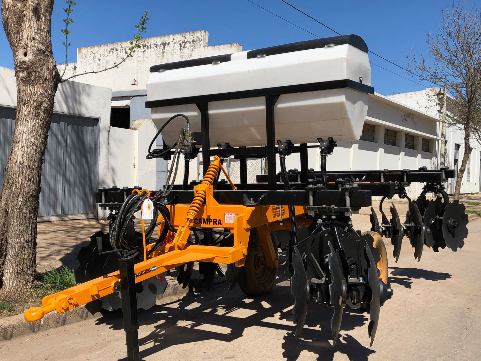 - Cuchillas marcadoras delanteras incluidas, “Wavy” de 22”, con resortes y 2 (dos) Rolos traseros niveladores, de 40 cms de diámetro central y 35 cms. en los extremos, con bancadas con rodamientos y resortes de compresión.