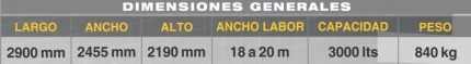 TOLVA: De chapa de acero de 3,2 mm. y revestida interiormente con pin tura epoxi (para mayor resistencia a la corrosión). Su forma le confiere gran capacidad y robustez. Posee rejilla-filtro interior que evita el paso de terrones.