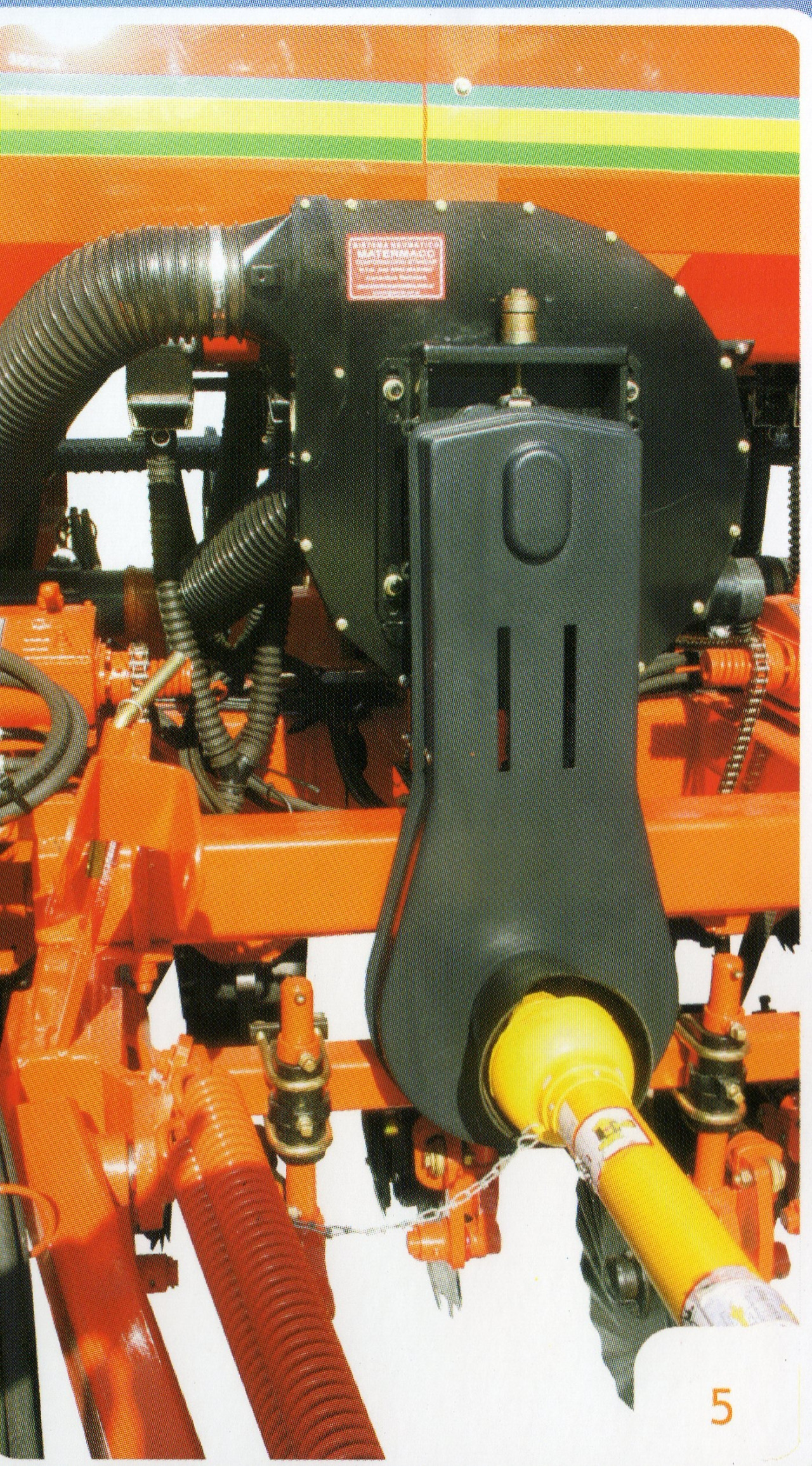Con mandos cardánicos individuales para siembra de grano grueso y tipo Chevron para fertilización. Posibilidad de utilizar dosificador a placa horizontal, inclinado o Neumaticos.
